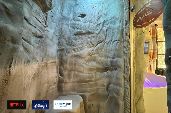 Questa suite ristrutturata a Giugno 2024 vanta una spa privata interna, unica nel suo genere. Incastonata in una grotta ricostruita, la spa include una biosauna, una sauna a infrarossi, una vasca idromassaggio termale...